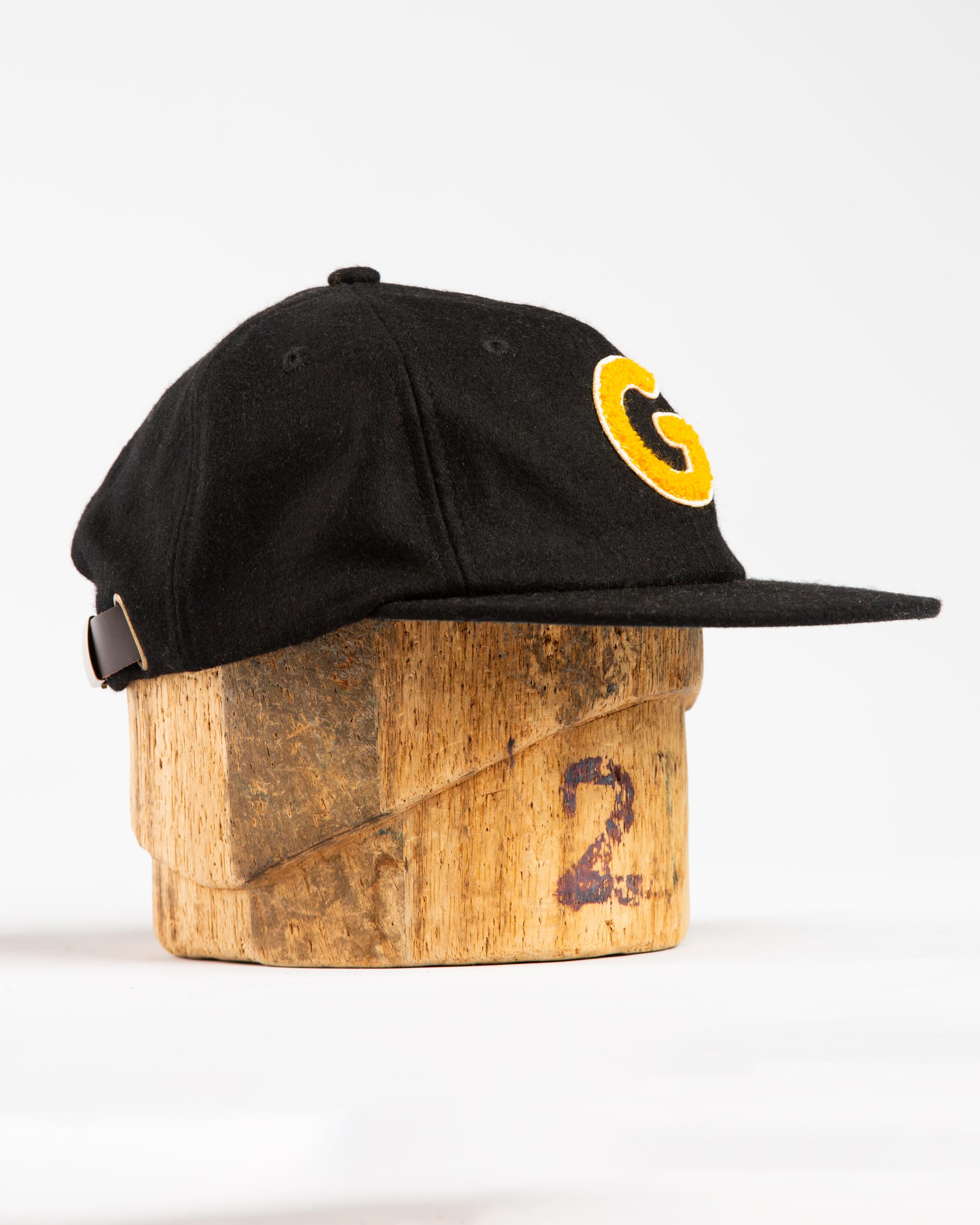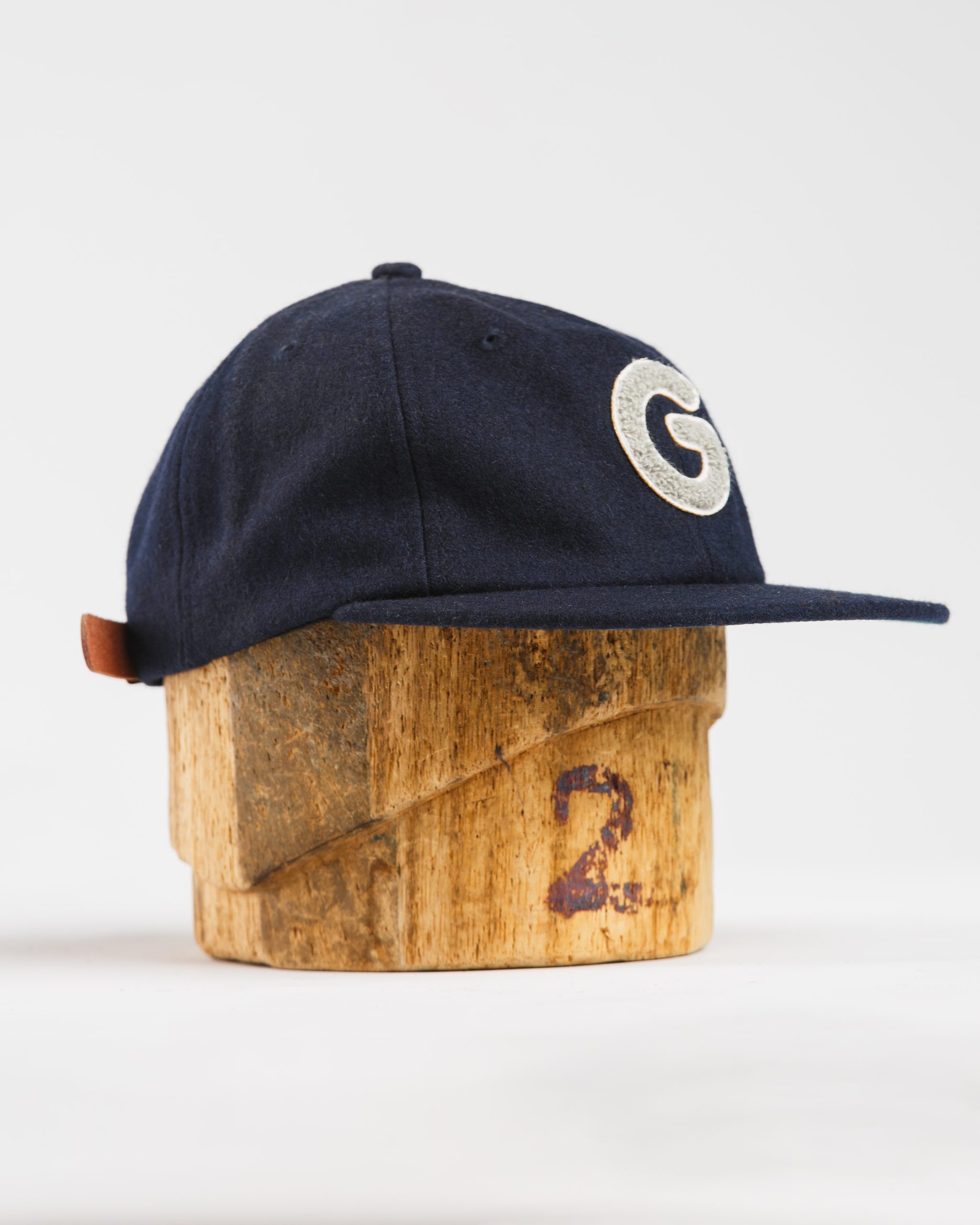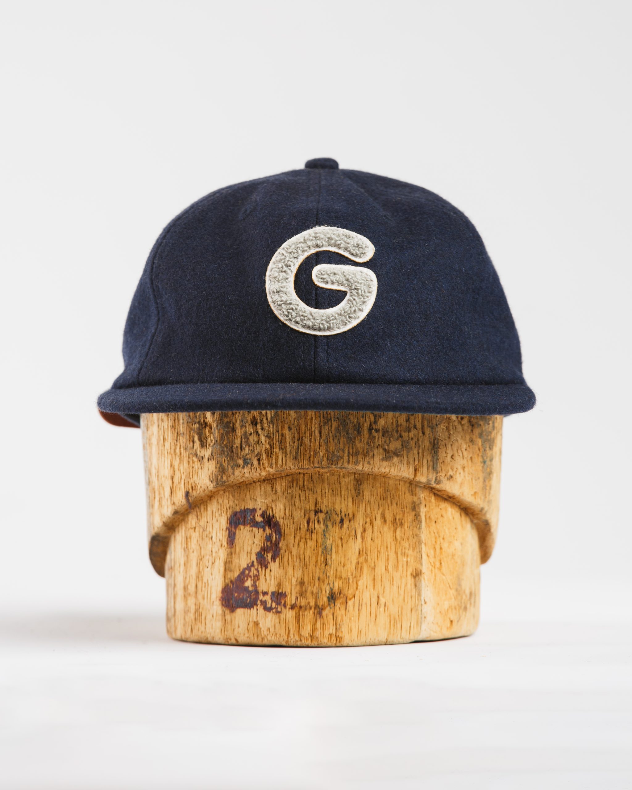 Melton wool cap featuring a chenille “G” monogram, made on a 1920s machine. A timeless blend of texture, heritage, and craftsmanship.